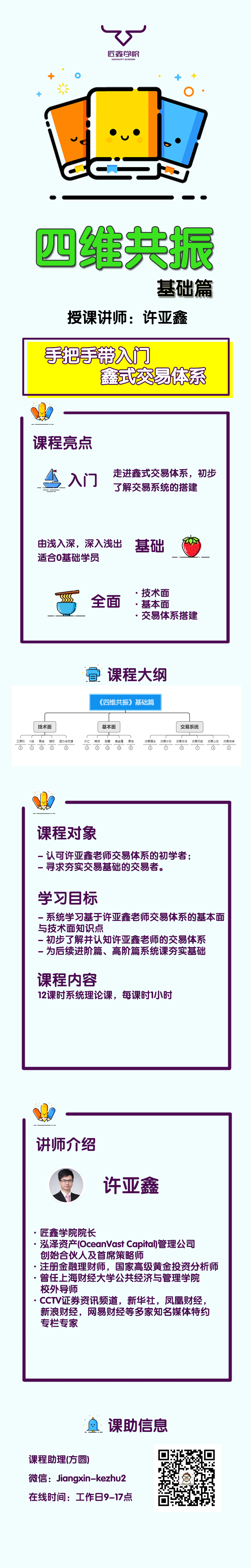 学习目标: - 系统学习基于许亚鑫老师交易体系的基本面与技术面知识点 - 初步了解并认知许亚鑫老师的交易体系 - 为后续进阶篇、高阶篇系统课夯实基础